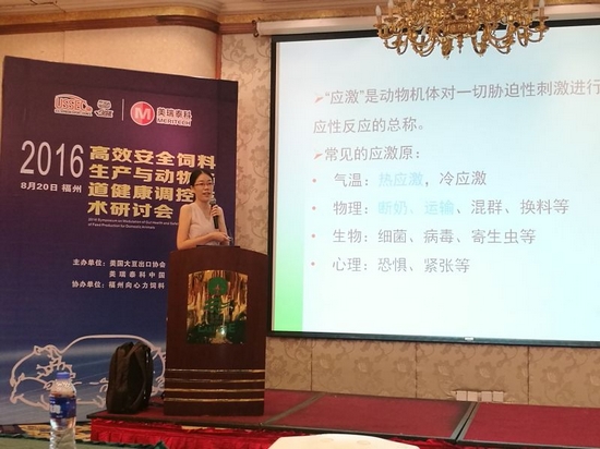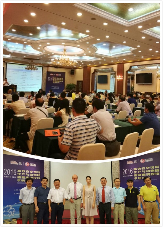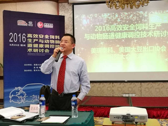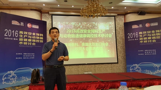 由美瑞泰科(中國)公司攜手美國大豆出口協(xié)會(huì)共同舉辦的2016“高效安全飼料生產(chǎn)與動(dòng)物腸道健康調(diào)控技術(shù)”研討會(huì)——福州站,于8月20日在福州西湖大酒店3樓御風(fēng)廳隆重召開。福建省及周邊省份的飼料廠及一條龍企業(yè)的技術(shù)研發(fā)經(jīng)理、總監(jiān)等近百人人參加了會(huì)議。