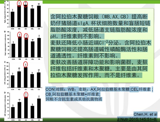 會(huì)議邀請(qǐng)了著名專家蔣宗勇博士/研究員作了“近五年仔豬研究新進(jìn)展”的報(bào)告。蔣博士課題組研究發(fā)現(xiàn),泌乳第2周泌乳量達(dá)到峰值。盡管母豬采食量較低,但泌乳量與國外報(bào)道數(shù)據(jù)比較接近,第3周略低。說明母豬是靠犧牲自身來實(shí)現(xiàn)其泌乳量的。據(jù)統(tǒng)計(jì),每1kg仔豬增重需要大約4kg母乳。由此可以推測(cè),母豬在第3周泌乳量和采食量較低,影響了仔豬增重。生產(chǎn)實(shí)際中主要依靠教槽料來補(bǔ)充仔豬營養(yǎng)供給不足的問題。蔣博士對(duì)蛋白飼料原料,發(fā)酵豆粕,功能性氨基酸,高鋅高銅,血漿蛋白粉、初乳、乳鐵蛋白等對(duì)斷奶仔豬生產(chǎn)性能和腸道健康影響的研究結(jié)果做了總結(jié)。蔣博士課題組也發(fā)現(xiàn),斷奶后仔豬腸道菌群改變,乳酸桿菌減低,而大腸桿菌增加,重新建立斷奶仔豬胃腸道菌群是腸道健康的關(guān)鍵。調(diào)控飼糧碳水化合物的目標(biāo)是,建立腸道健康菌群,防治斷奶后腹瀉。所以,可以將飼料纖維看成是一種益生元。在斷奶仔豬飼糧中適量增加飼料纖維如麥麩、米糠、燕麥殼等可能改善斷奶仔豬腸道健康,主要是由其木聚糖(半纖維素)發(fā)揮。飼料禁用抗生素的條件下保持腸道健康需要多種添加劑和營養(yǎng)措施協(xié)同作用,選擇低蛋白飼糧并補(bǔ)充氨基酸,可改善腸道健康。植物提取物、有機(jī)酸、膳食纖維可能改善仔豬腸道健康。